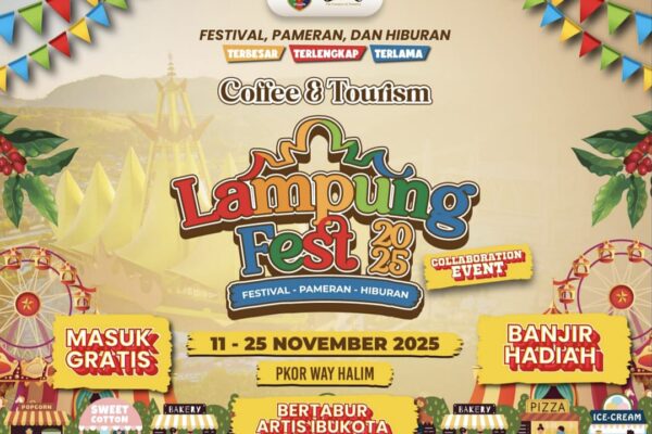 Bandar Lampung – Pemerintah Provinsi Lampung akan menggelar Lampung Fest 2025 pada 11–25 November 2025 di PKOR Way Halim, Bandar Lampung. Tahun ini, festival tahunan tersebut hadir dengan konsep baru dan akses masuk gratis bagi masyarakat. Mengusung tema “Coffee and Tourism”, Lampung Fest 2025 menjadi bagian dari Lampung Boemi Event yang dikemas lebih modern dan…